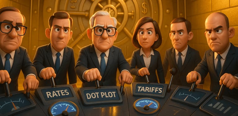 Powell takes the stage Wednesday after keeping rates at 4.25–4.5%. Dot plot drama incoming as policymakers juggle tariff-fuelled inflation vs. growth concerns. Expect cautious vibes and maybe a wink at future rate hints.