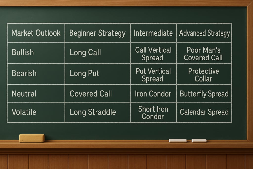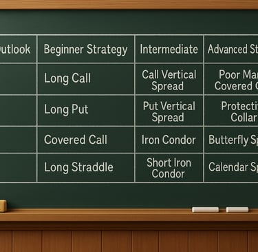 Options trading isn't about finding the one perfect strategy – it's about building a toolkit of approaches that match different market conditions and your evolving skills. Begin with a simple, defined-risk strategy, such as covered calls and vertical spreads. Master those before progressing to more complex multi-leg strategies.